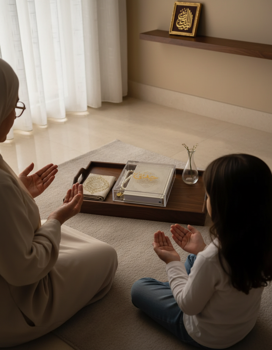 Choose from meaningful engravings such as “القرآن الكريم” (The Holy Qur’an), “رمضان كريم” (Blessed Ramadan), or personalize with a loved one’s name for an unforgettable keepsake. Available empty or with a Qur’an and Sebha, this versatile piece becomes a centerpiece for Ramadan, Eid, or everyday devotion. With its clear form and golden detail, the Qur’an Calligraphy Box enriches prayer spaces while preserving the sanctity of the book it holds. |