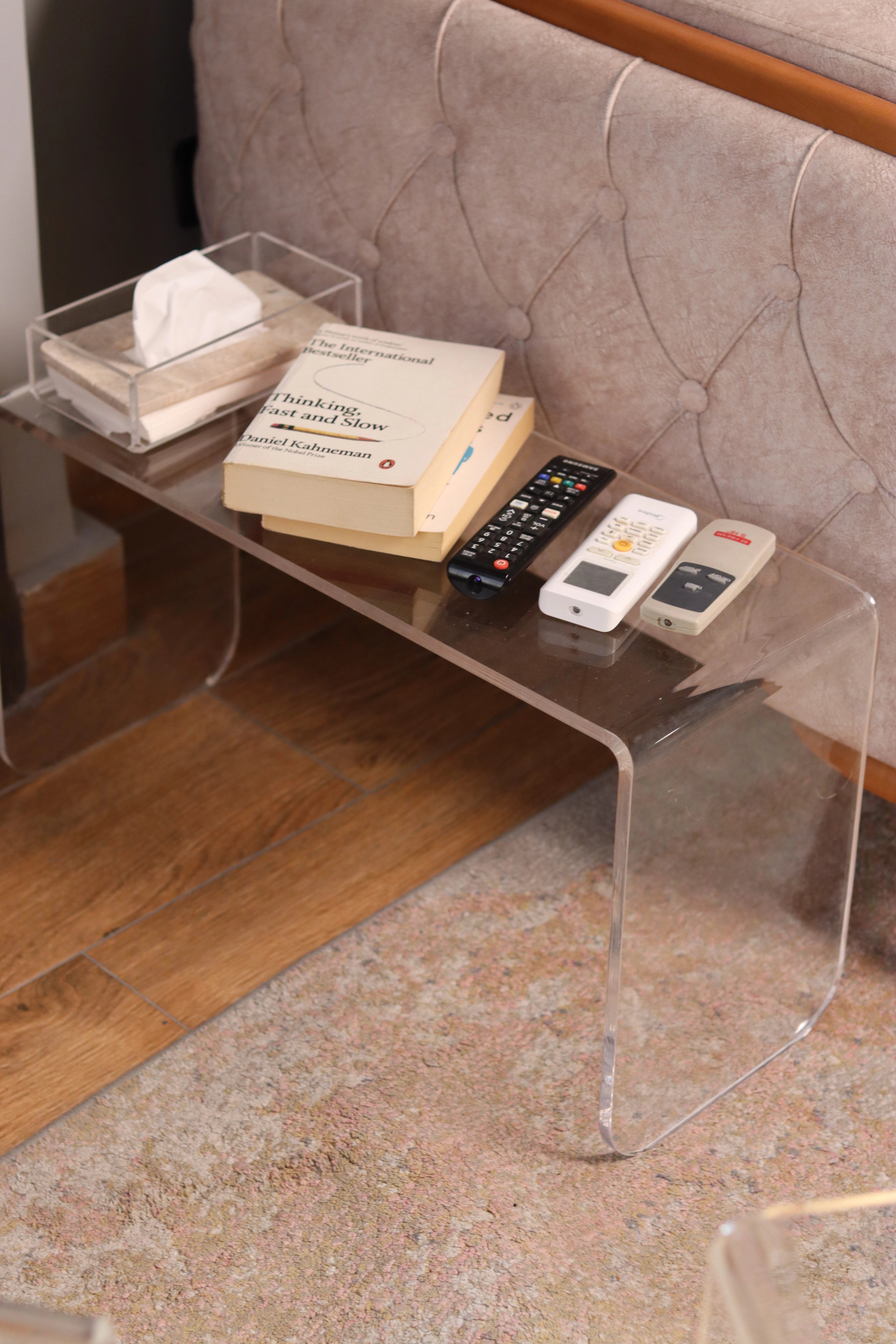 Available in two functional sizes 50×30×40 cm and 50×25×40 cm this table can be used as a side table, coffee table, bedside stand, or even as a display pedestal. Whether placed beside a lounge chair or styled in a gallery-like corner, the Waterfall Table adds quiet sophistication without overpowering the room. It’s a must-have piece for lovers of clear furniture and architectural form.