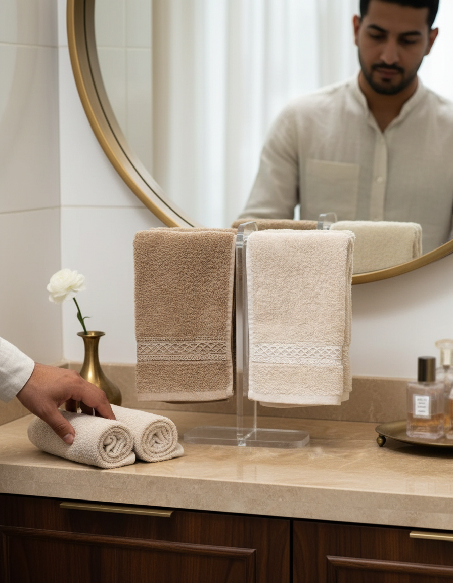 Available in three variations, for 2, 4, or 6 towels, this stand is versatile enough for both home and commercial use. Use it in a bathroom to hold hand or face towels, in a spa for guest accessories, or in event setups to display merchandise or amenities. Its transparent design matches all styles while creating an upscale presentation.