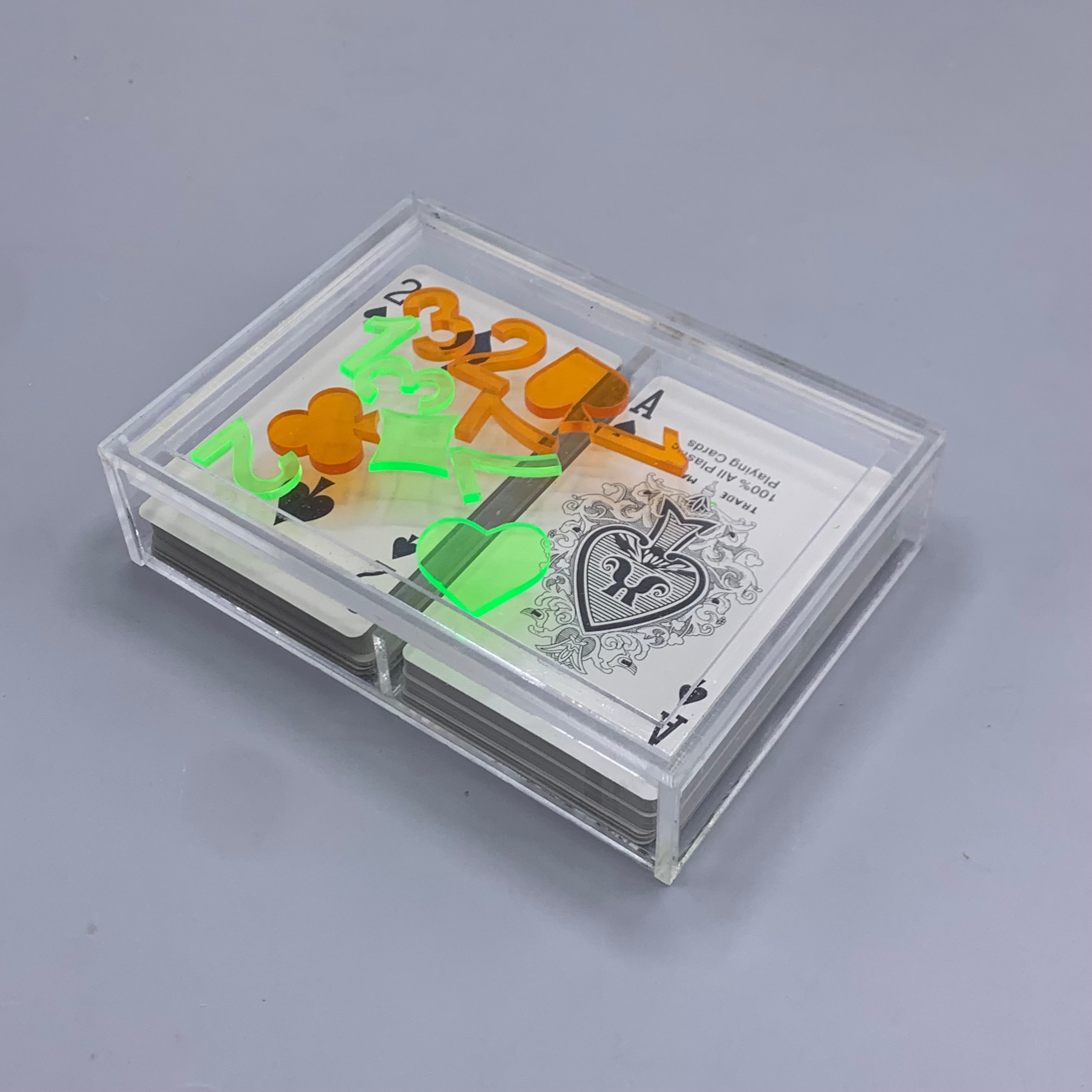 Enhance your card game experience with the Acrylic Playing Cards Box by Zee Designs Plexiglass. This minimalist, transparent storage solution merges modern design with practicality. Crafted from high-quality clear acrylic, the box securely holds your standard playing cards.