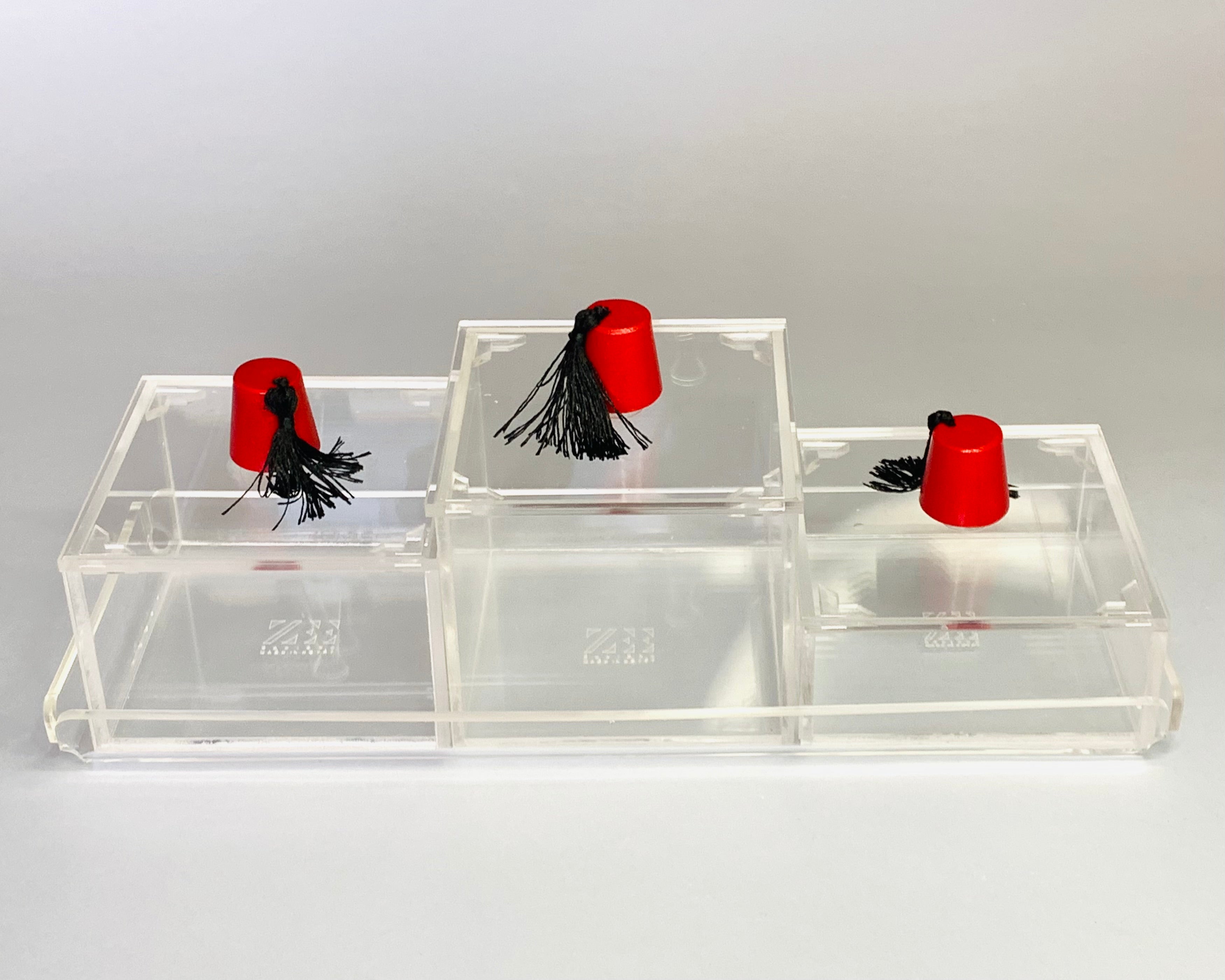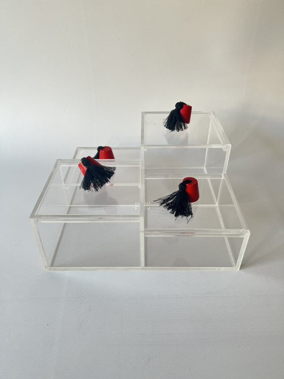 You can choose between 4 compartments box with 4 separate tarboush knob covers OR